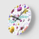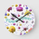 The clock did not take as long to arrive as I thought it might and was extremely well packaged. I didn't do the measurements so I didn't realize it is a little smaller than the average clock but that does not matter (just make sure you check if that's important to you).It is really nifty! It seems very solid and well made not flimsy at all. It has been going well and has kept good time in its few weeks on my wall. Nice product. Gets noticed too! Nicer in real life than the picture but true to the picture