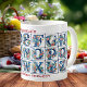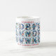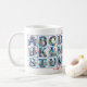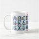 Mug featuring tiles with flowers in a Mediterranean style. Nice for children who are learning the alphabet or for adult gardeners and flower lovers.