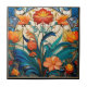 Add a touch of class to your home with an Art Deco Flowers ceramic tile. This botanical design has the flowing, natural lines that are the base of the Art Deco style. The many shades of blue, yellow, and orange, bring a sophisticated elegant style to any space. This ceramic tile is ideal for a backsplash, wall art, or as a stand alone piece of art.