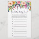 Use our colourful flower baby shower game cards with a white background to have the guests "Guess the Baby Food." Set out jars of baby food with the labels covered and have guests try to guess what the flavour of each jar is using sight, smell, and even taste. Be sure to check out our large selection of coordinating baby shower items in our colourful floral baby shower collection!