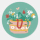 Flower Basket - on mid green. Classic Round Sticker