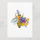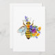 Artistically drawn, flower, honey bee with contrasting colors, yellow, bright, blooming california poppy and blue wild plants on white background.