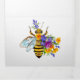Artistically drawn, flower, honey bee with contrasting colors, yellow, bright, blooming california poppy and blue wild plants on white background.