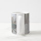 This mug features a photograph of a bluish green coloured British species of Flower Beetle sitting on a white Carnation flower. The photo was taken using macro photography to show the detail and colour of this beautiful beetle species. The design is shown on a basic white coffee mug, but is also available on other colours and styles of mugs.