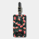 Charming floral luggage tag with a pattern of flowers, berries, and leaves in pink, black, white, and green. Add your name!