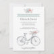 Spring wedding invitation with bicycle and flowers. Great for romantic garden weddings and other bohemian themed events.