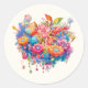 Flower Bouquet in Pink Orange & Blue Boho Classic Round Sticker