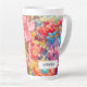 Latte mug with a colourful collection of spring and summer flowers. Pink orange and blue dominate the colour scheme. Bright and bold floral arrangement exudes happiness. :)