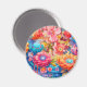 A magnet with a colourful collection of spring and summer flowers. Pink orange and blue dominate the colour scheme. Bright and bold floral arrangement exudes happiness. :)