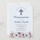 Celebrate your special day with this beautiful first communion invitation design. This design features a beautiful flower frame and cross. You can customise all the text and background colour.