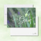 A flower bud in front of a green background with the saying "thank you for helping me grow" shows appreciation for your child's teachers, bus driver, principal, nurse, counsellor, coach, lessons instructors, club advisers, and the many others who guide them throughout their school day and far beyond. On the back, a small dark green floral embellishment adds a bit of colour while also maintaining a large blank area for your personal note of thanks.