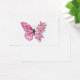 Flower arrangement of pink butterfly with pink Japanese cherry blossoms on white background.