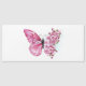 Flower arrangement of pink butterfly with pink Japanese cherry blossoms on white background.