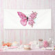 Flower arrangement of pink butterfly with pink Japanese cherry blossoms on white background.
