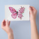 Flower arrangement of pink butterfly with pink Japanese cherry blossoms on white background.