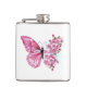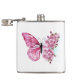 Flower arrangement of pink butterfly with pink Japanese cherry blossoms on white background.