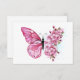 Flower arrangement of pink butterfly with pink Japanese cherry blossoms on white background.
