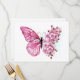 Flower arrangement of pink butterfly with pink Japanese cherry blossoms on white background.