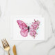 Flower arrangement of pink butterfly with pink Japanese cherry blossoms on white background.