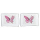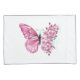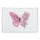 Flower arrangement of pink butterfly with pink Japanese cherry blossoms on white background.