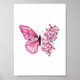 Flower arrangement of pink butterfly with pink Japanese cherry blossoms on white background.