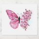 Flower arrangement of pink butterfly with pink Japanese cherry blossoms on white background.