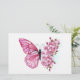 Flower arrangement of pink butterfly with pink Japanese cherry blossoms on white background.
