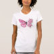 Flower arrangement of pink butterfly with pink Japanese cherry blossoms on white background.