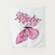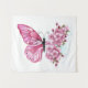 Flower arrangement of pink butterfly with pink Japanese cherry blossoms on white background.