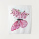 Flower arrangement of pink butterfly with pink Japanese cherry blossoms on white background.
