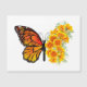 Orange, detailed monarch butterfly with wing decorated with yellow, vibrant California poppy on white background.