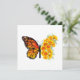 Orange, detailed monarch butterfly with wing decorated with yellow, vibrant California poppy on white background.