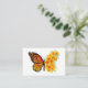 Orange, detailed monarch butterfly with wing decorated with yellow, vibrant California poppy on white background.