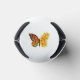 Orange, detailed monarch butterfly with wing decorated with yellow, vibrant California poppy on white background.