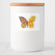 Orange, detailed monarch butterfly with wing decorated with yellow, vibrant California poppy on white background.