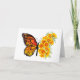 Orange, detailed monarch butterfly with wing decorated with yellow, vibrant California poppy on white background.