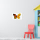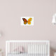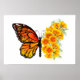 Orange, detailed monarch butterfly with wing decorated with yellow, vibrant California poppy on white background.