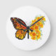 Flower Butterfly with Yellow California Poppy Round Clock