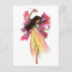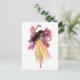 Dark-haired dancing fairy in shiny carnival dress with flower wings