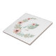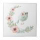 Adorable pink and blue floral crescent with a baby bird art print ceramic tile.