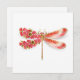 Artistically drawn, gold, jewelled dragonfly with red and wings decorated with red, blooming, jewelled Japanese cherry on white background. Gold Dragonfly.