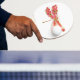 Artistically drawn, gold, jewelled dragonfly with red and wings decorated with red, blooming, jewelled Japanese cherry on white background. Gold Dragonfly.