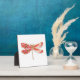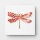 Artistically drawn, gold, jewelled dragonfly with red and wings decorated with red, blooming, jewelled Japanese cherry on white background. Gold Dragonfly.