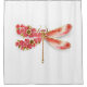 Artistically drawn, gold, jewelled dragonfly with red and wings decorated with red, blooming, jewelled Japanese cherry on white background. Gold Dragonfly.