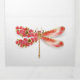 Artistically drawn, gold, jewelled dragonfly with red and wings decorated with red, blooming, jewelled Japanese cherry on white background. Gold Dragonfly.
