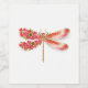 Artistically drawn, gold, jewelled dragonfly with red and wings decorated with red, blooming, jewelled Japanese cherry on white background. Gold Dragonfly.