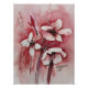 This watercolor exudes a sense of elegance and softness. The three flowers are beautifully rendered in a combination of warm red tones and subtle white, making them seem to almost shine against the background. The artistic brushstrokes create a fluid movement, and the slightly fading background enhances the sense of depth and dynamism.