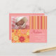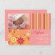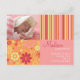 "Flower Fizz" pink & orange photo birth announcement. Personalise this modern and stylish photo postcard template with your baby girl's photo and details for a one-of-a-kind birth announcement.