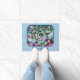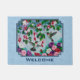Flower Garden and Hummingbirds Blue Doormat