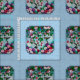 Flower Garden and Hummingbirds Blue Fabric